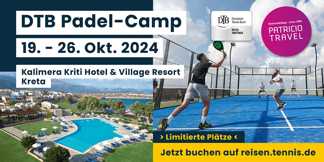 - unser Partner Patricio Travel verlost 1 x 1 einwöchige Tennis-Traumreise zum DTB Padel-Camp nach Kreta ins Traumhotel Kalimera Kriti Hotel & Village Resort für zwei Personen. Enthalten ist: