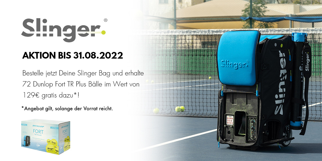 Dein Trainer oder deine Spielpartner sind im Urlaub, verletzt oder haben keine Zeit? Auf die Slinger Bag, den verlässlichen Tennispartner, kannst du immer zählen! Auch wenn du mal konzentriert an einem Schlag feilen oder dich komplett auspowern möchtest, ist die Slinger Bag die perfekte Wahl. Die leichte und transportable Ballmaschine eignet sich hervorragend für Trainingseinheiten jeder Art auf dem Platz, lässt sich problemlos tragen, rollen und im Kofferraum verstauen und ist mit wenigen Handgriffen startklar. Sichere dir gleich das exklusive Angebot und erhalte beim Kauf der Slinger Bag Bälle im Wert von 129 Euro gratis dazu!