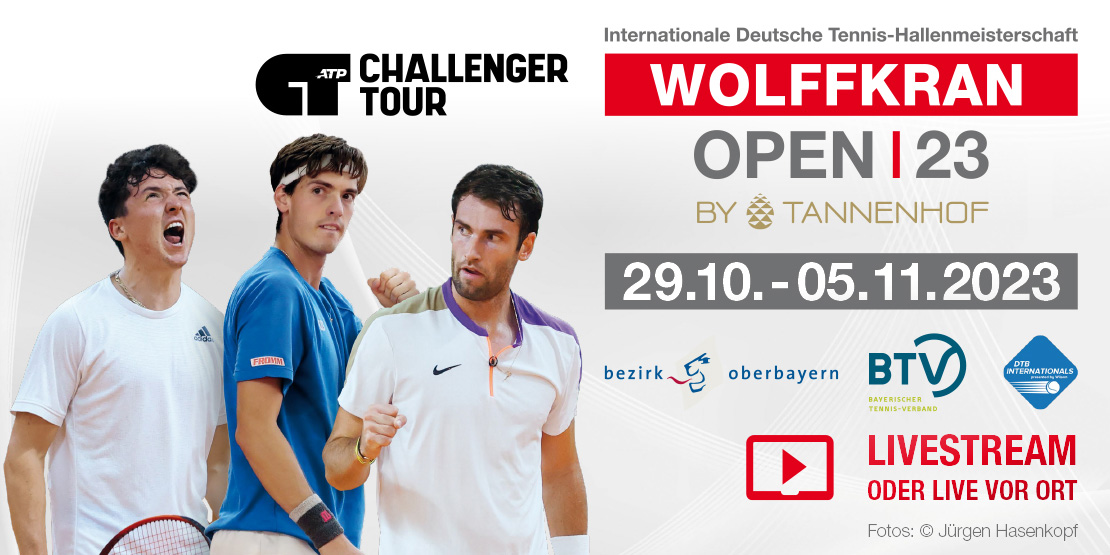 Nach der erfolgreichen Vorjahresausgabe mit Rekord-Besucherzahlen wird die 7. Auflage der WOLFFKRAN OPEN by Tannenhof zum neuen Termin in den bayerischen Herbstferien vom 29. Oktober bis 5. November 2023 über die Bühne gehen. Das mit 73.000 Euro dotierte ATP-Challenger-Turnier der Kategorie 75 wird auch in diesem Jahr auf der Anlage des TC Ismaning ausgetragen und kann mit zwei Top 100-Spielern, zwei ehemaligen Champions und zwei ehemaligen Junioren-Grand- Slam-Siegern ein Feld der Extraklasse vorweisen.