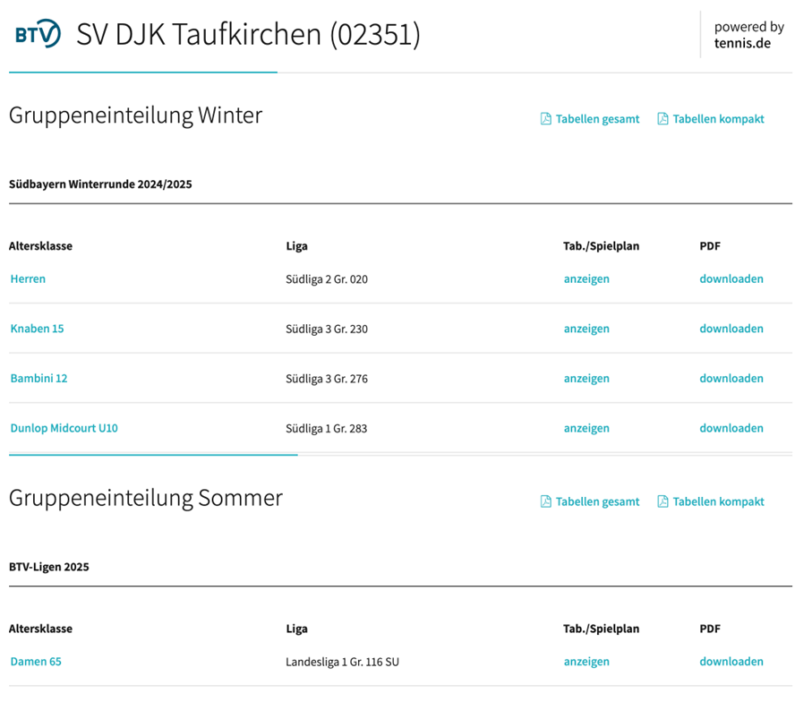 - … enthält alle aktuellen Links zu Mannschaftsdetails, Tabellen, Spielplänen, Ergebnissen auf tennis.de