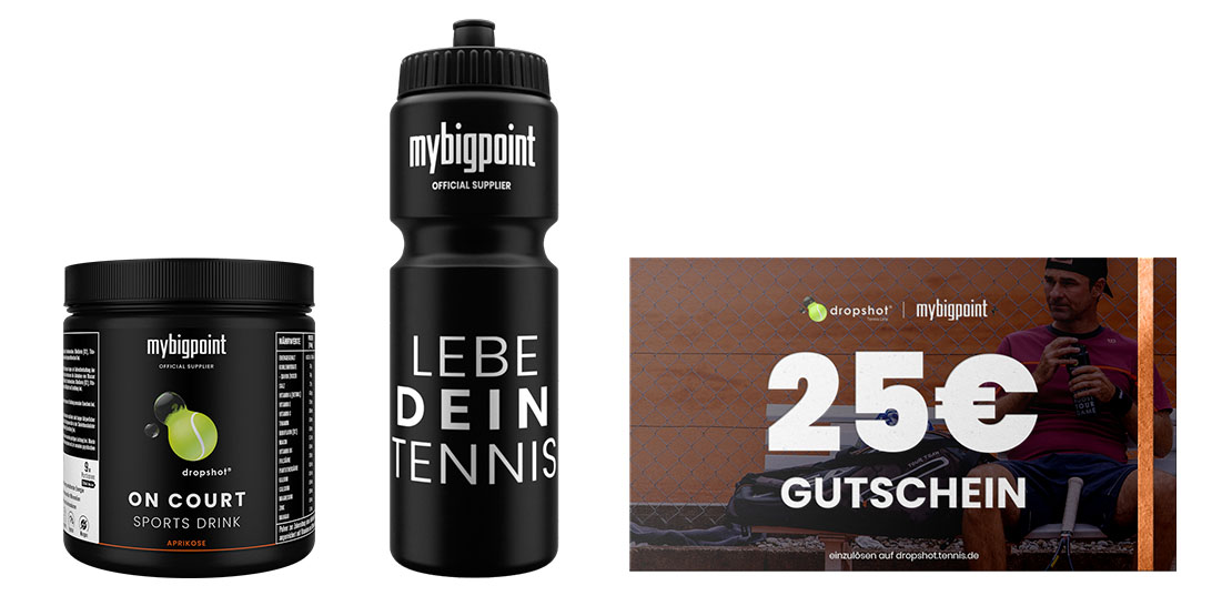 Unser Tipp: Kurz vor dem Betreten des Tennisplatzes (ca. 10-15 Minuten) solltest du zusätzlich zum Wasser auch Getränke mit Kohlenhydraten und Elektrolyten schluckweise trinken, damit du dein Energielevel leicht anhebst und somit voll konzentriert ins Match bzw. Training starten kannst.
