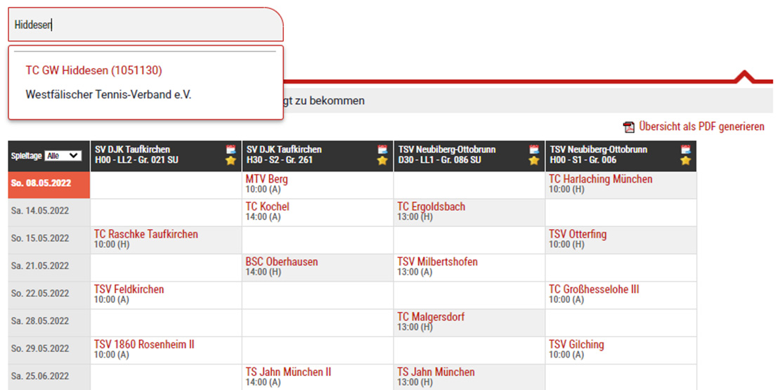 - PDF-Übersicht des Vereinsspielplans erstellen und ausdrucken