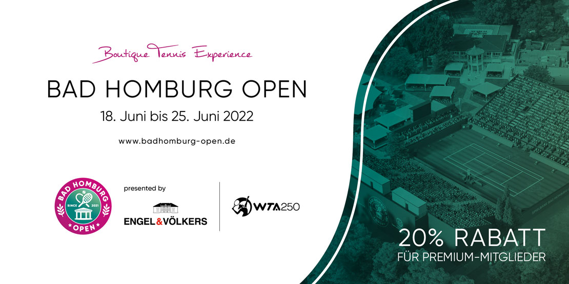 - aktiviere den Rabatt-Code für die Bad Homburg Open >> HIER auf der kostenfreien Vorteilsplattform tennis.de BENEFITS