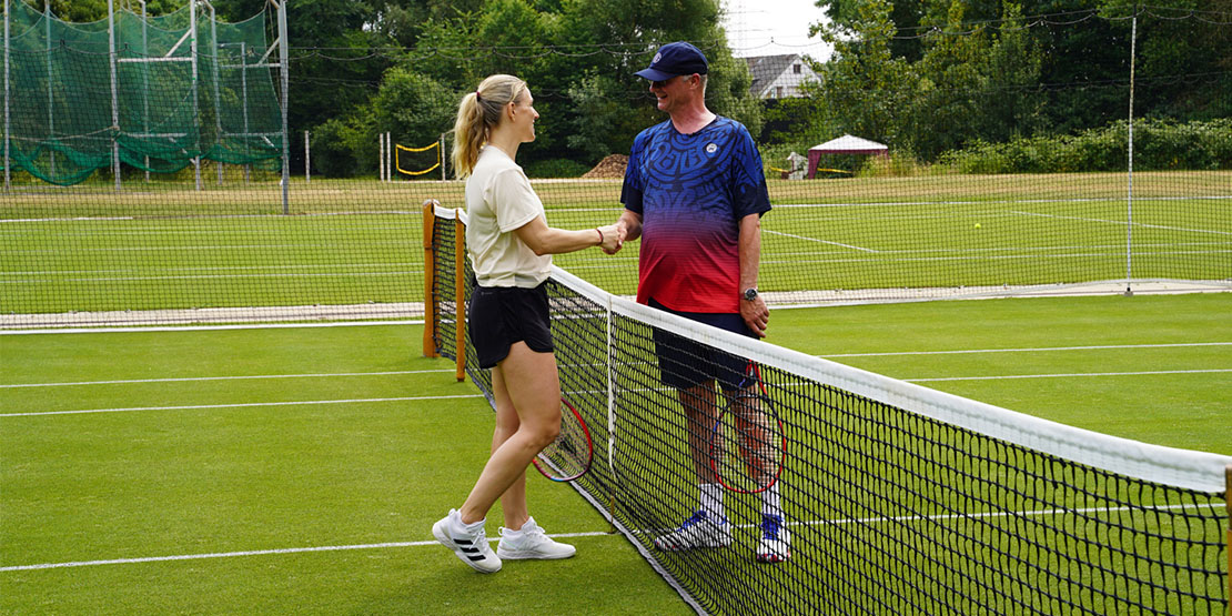 Am 19. Juni 2023, fünf Tage vor dem offiziellen Start der Bad Homburg Open, war es dann so weit. Nach einem netten Empfang von Beurer mit gemeinsamem Abendessen am Vorabend und einer Übernachtung im Steigenberger Hotel wurde Dr. Mang ganz herzlich von Angie und ihrem Manager Aljoscha Thron auf dem Rasenplatz begrüßt. „Mein erstes Mal auf dem Tennisplatz und dann nicht auf Sand, sondern gleich Rasen. Was für ein Erlebnis!“, so Dr. Mang überrascht, bei dem der Bann sofort gebrochen war. „Wow, was für eine sympathische Frau. Bei ihrem Lebenslauf ist sie doch so bodenständig geblieben. Nicht unbedingt selbstverständlich…“.