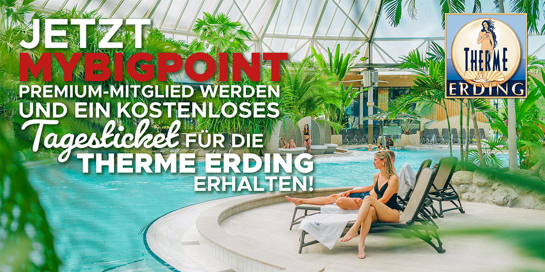 Pünktlich zum Start der Fußball-EM haben jetzt auch mybigpoint Basis-Mitglieder die Chance, zu punkten: Jetzt Premium-Mitglied von mybigpoint werden und eines von 500 kostenlosen Tagestickets für die Therme Erding, die größte Therme der Welt, erhalten! #GoPremium