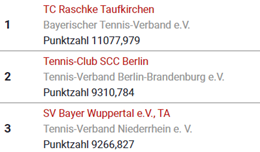 Sowohl bei Turnieren als aktuell auch in der Winterrunde werden von allen aktiven Tennisspieler:innen in Deutschland derzeit noch fleißig LK-Punkte gesammelt, die auch in die mybigpoint Races einfließen. Die punktbesten Spieler:innen des nationalen Jahres-Livescores sowie die punktbesten Vereine national werden von mybigpoint und seinen Partnern mit exklusiven Preisen prämiert. Wo stehst du und dein Verein aktuell in den mybigpoint Races?