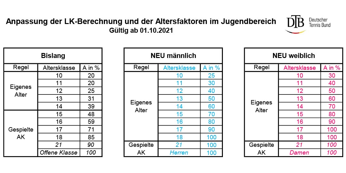Die neuen Werte sorgen für einen fließenden Übergang zwischen den benachbarten Jahrgängen und ermöglichen einen der altersgemäßen Leistungsentwicklung entsprechenden Aufstieg in der LK. Gleichzeitig wird ein altersgerechtes Spielen gefördert.