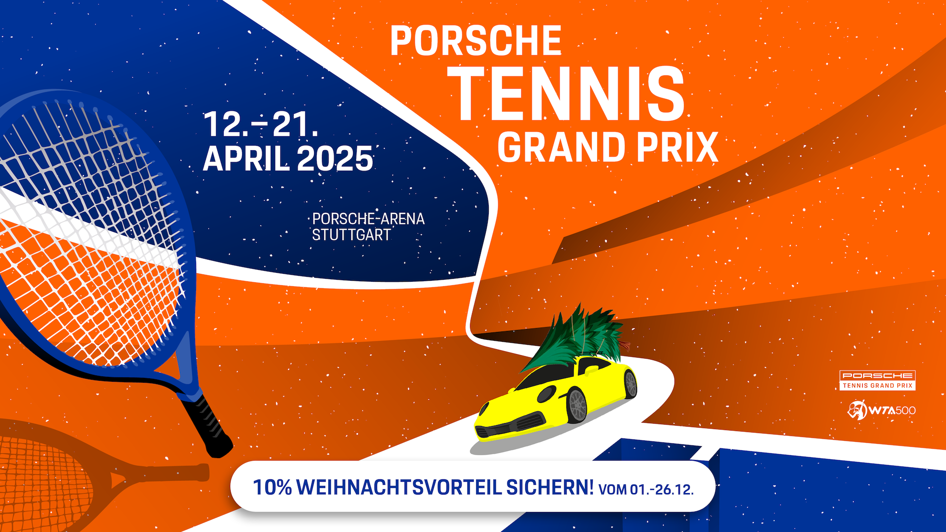 Tickets für den Porsche Tennis Grand Prix - Ob als Geschenk oder als Highlight für euch selbst. Sichert euch jetzt eure Tickets und profitiert bis zum 26. Dezember von 10% Weihnachtsvorteil* auf die heißbegehrten Plätze in der Porsche-Arena! Ein sportliches Highlight, das perfekt unter den Weihnachtsbaum passt!¶