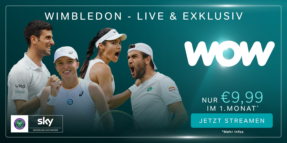 Mach dich bereit für die 135. Wimbledon Championships und streame das Grand-Slam-Turnier live & exklusiv mit WOW (früher Sky Ticket). Bei den Männern geht Novak Djokovic als Titelverteidiger ins Rennen, verfolgt von Rafael Nadal, Matteo Berrettini und einigen weiteren Titelaspiranten. Kann sich Iga Swiatek, die mit großem Abstand Führende der Damen-Weltrangliste, auch auf Rasen gegen die vielen Konkurrentinnen durchsetzen? Oder spielt Serena Williams bei ihrem ersten Turnier nach über einem Jahr Pause wieder ganz vorne mit? Mit WOW kannst du Wimbledon jeden Tag bequem live streamen und die verschiedenen Spiele verfolgen. Vom ersten Spiel der ersten Runde bis zu den Finals am 9. und 10. Juli.