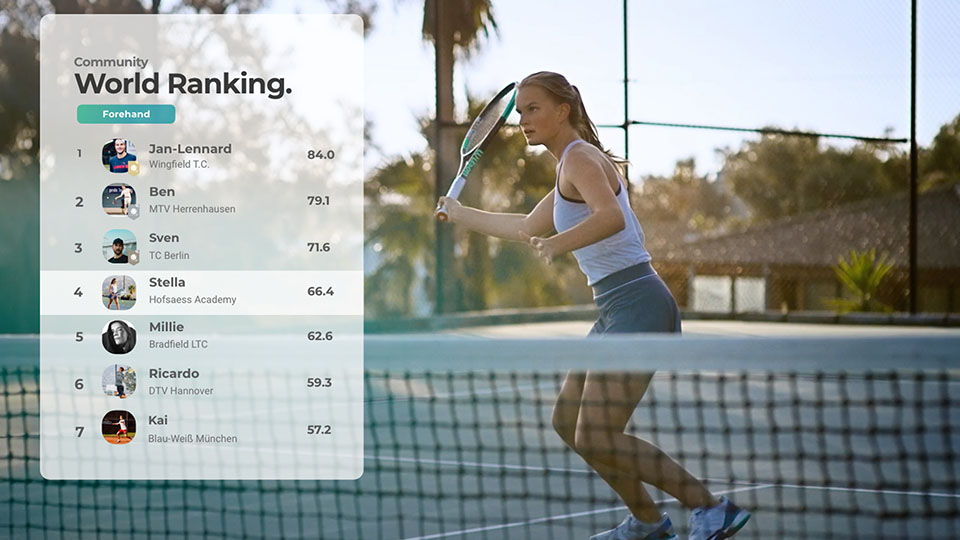 Dank dieses einfachen Scores für Vorhand, Rückhand und Aufschläge erhalten Spieler auf dem Platz nicht nur unmittelbare Rückmeldung zur Qualität einer Übung, sondern sehen erstmals auch, wie sie sich mit der Zeit verbessern. Alles mit dem Ziel, Frustration aus dem Training zu verbannen. Über einfach zu vermittelnde Inhalte findet Gamification so seinen Weg ins Amateurtraining.