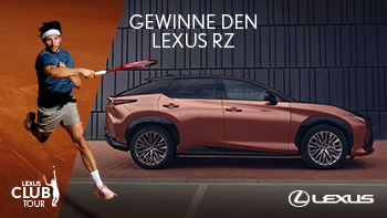 Sichere dir die Möglichkeit, den vollelektrischen Lexus RZ für 12 Monate zu gewinnen! Einfach anmelden, Probefahrt vereinbaren und mit etwas Glück fährst du schon bald in diesem Premium-SUV zum nächsten Tennismatch. Melde dich jetzt an!